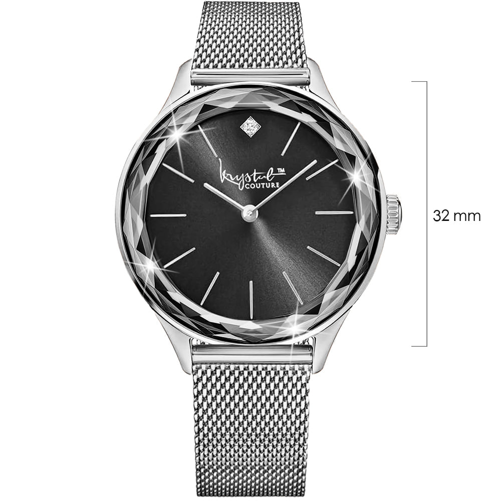 Embellished with Crystals from SWAROVSKI® Geometric cut hardened scratched resistant Mineral Glass designer watch from Krystal Couture to enhance your look in every outfit. Seiko Quartz Japanese movement for precision and accuracy