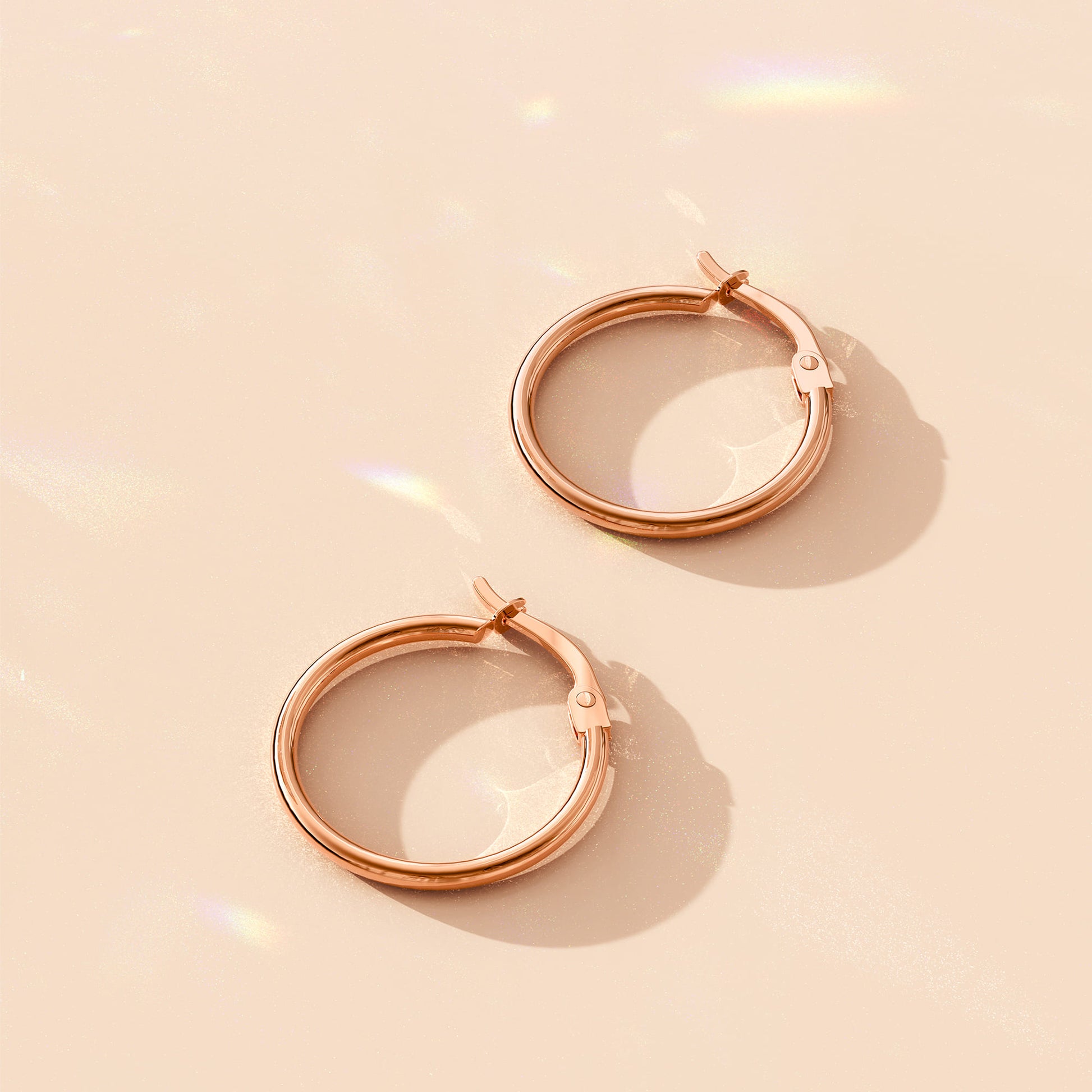 9ct Rose Gold 15mm Rounded Hoop Earrings