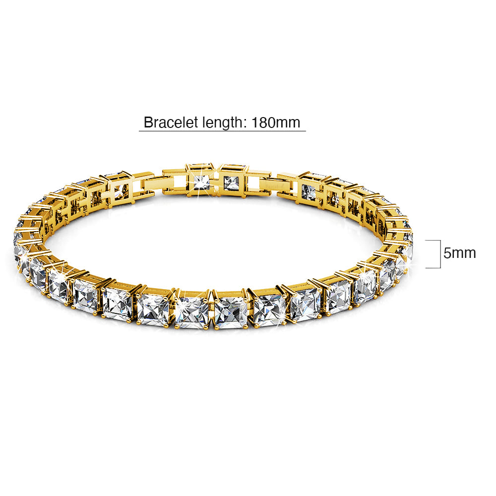 This gorgeous tennis bracelet features round-cut Crystals From SWAROVSKI® made of 18K Gold plated Alloy secured with magnetic closure clasp