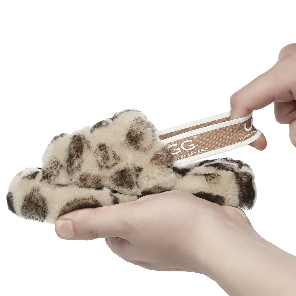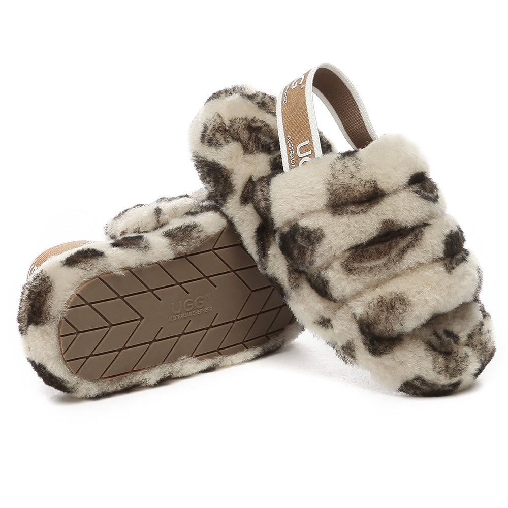 AUSTRALIAN SHEPHERD® UGG Kids Fluffy Slides Slingback Leopard Puffy #AS2066K