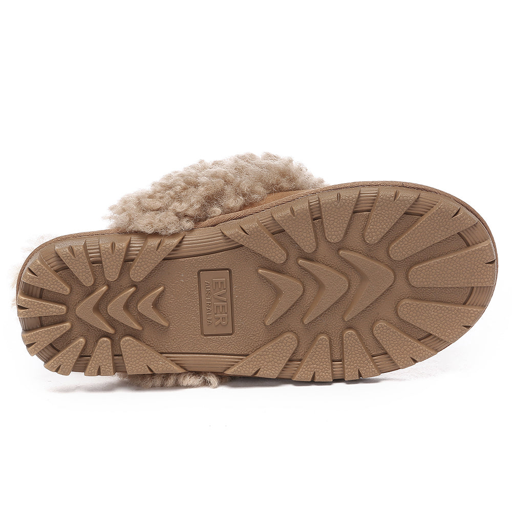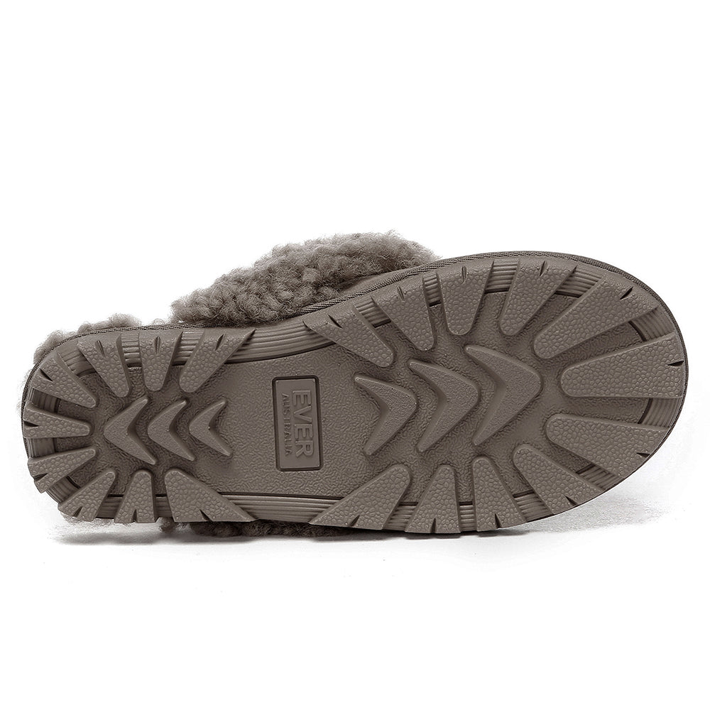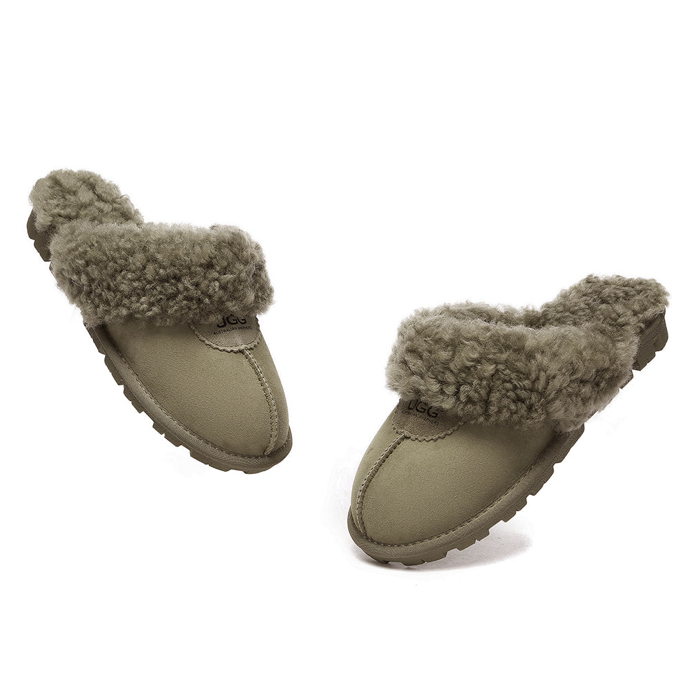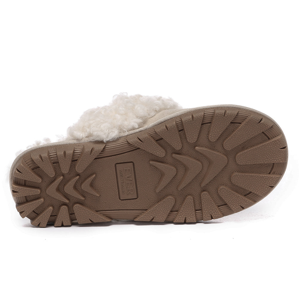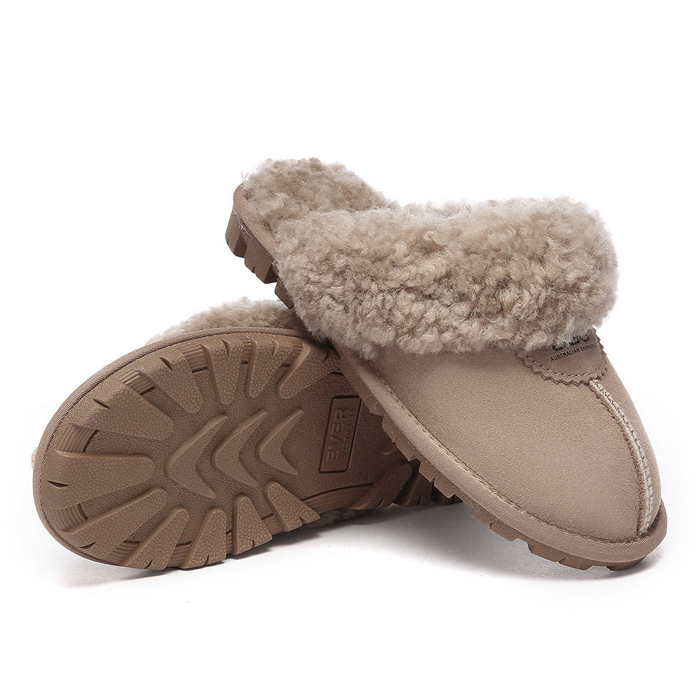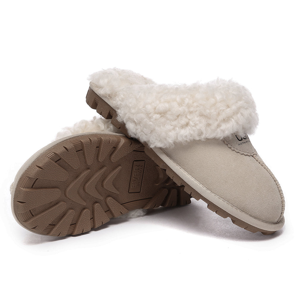 Discover the ultimate cosiness with the Australian Shepherd Waffle Curly Slippers, the most adorable style of the season. These slippers showcase a unique curly sheepskin wool collar which adds a touch of elegance and comfort. Effortlessly chic, these slippers are the perfect design for unwinding and kicking back in at home. With double-faced sheepskin that is dense and incredibly snug, you'll be wrapped in warmth no matter the hour.
