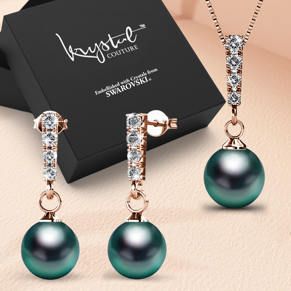Boxed Lustrous in Rose Gold Embellished with SWAROVSKI® Iridescent Tahitian Look Pearls Set