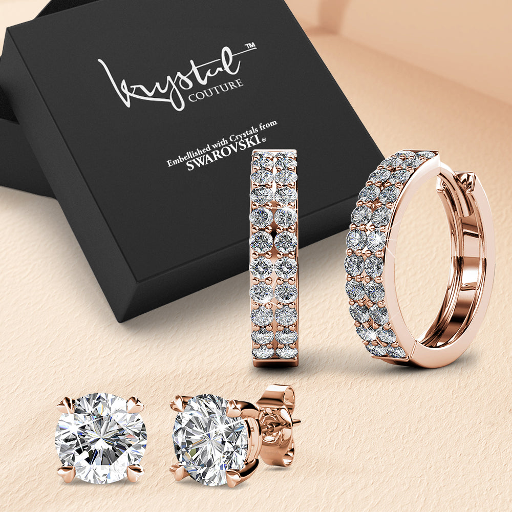 Grace the beauty of this gorgeous earrings set featuring brilliant Crystals from SWAROVSKI® in 18K Rose Gold finish. Presented beautifully , these 2 pair earrings are perfect for day and night wear.