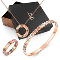 These roman numeral themed earrings, bangle and ring set features a Roman Numeral design engraved which offers a timeless yet modern look, perfect for any occasion. Add the elegant look and walk in grace and confidence.
