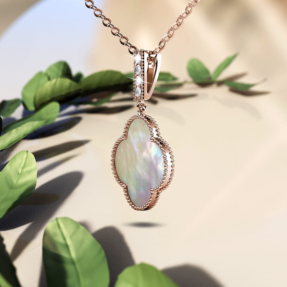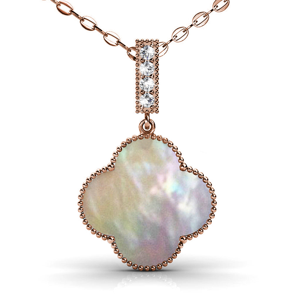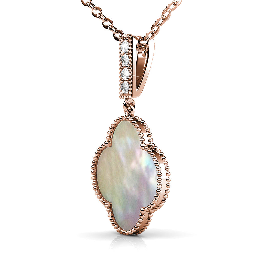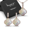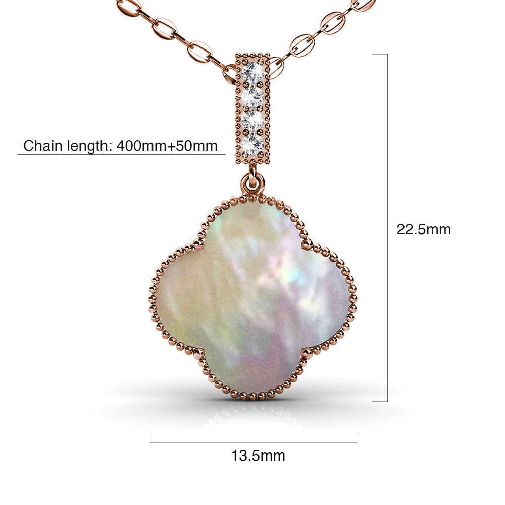 Flaunt these lovely necklace featuring clover design and Embellished with crystals from SWAROVSKI® This lovely pair is made of high glossed 18K Rose Gold plating, extra coated for an enduring shine. Comes complete with a pair of matching earrings and beautifully packaged in a gift box.