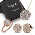 Get ready to dazzle in this sparkly, glimmering full set of our Pav&eactue; Earrings, Necklace and Rings. All items in the gift set are crafted of 18K Rose Gold overlay adorned with Crystals from SWAROVSKI®. Simply stunning!