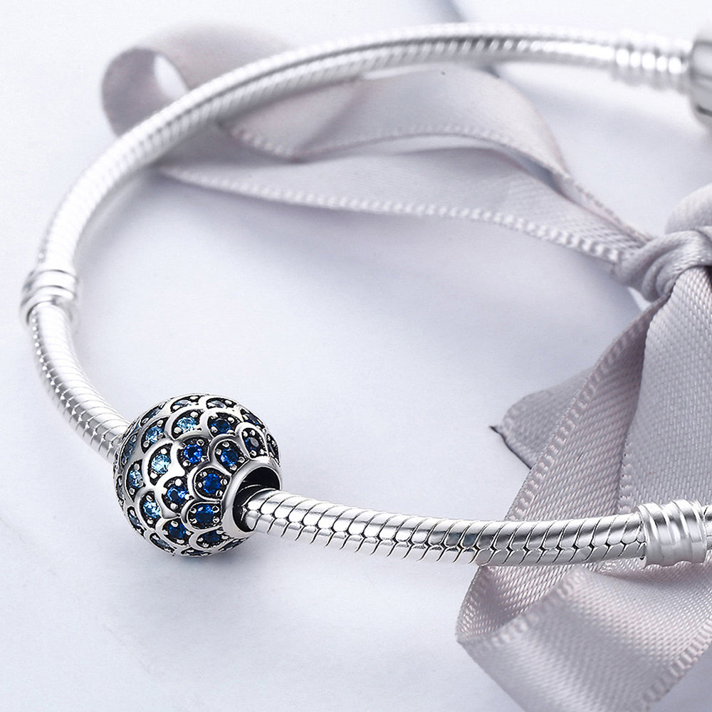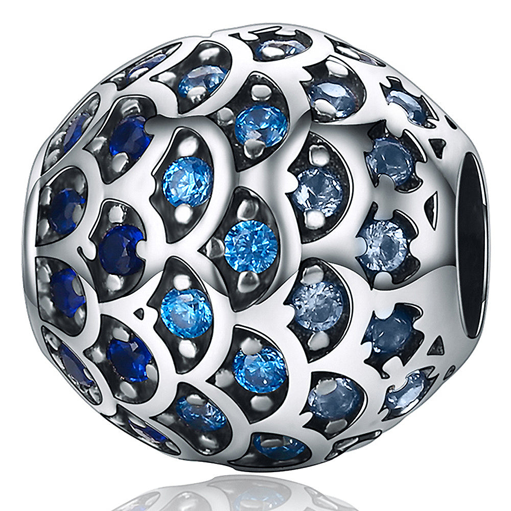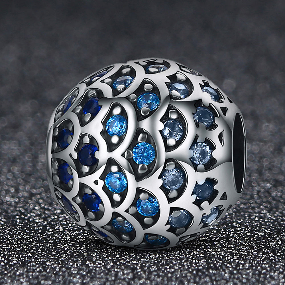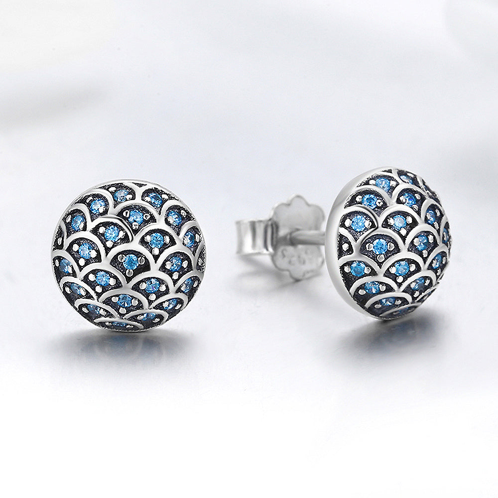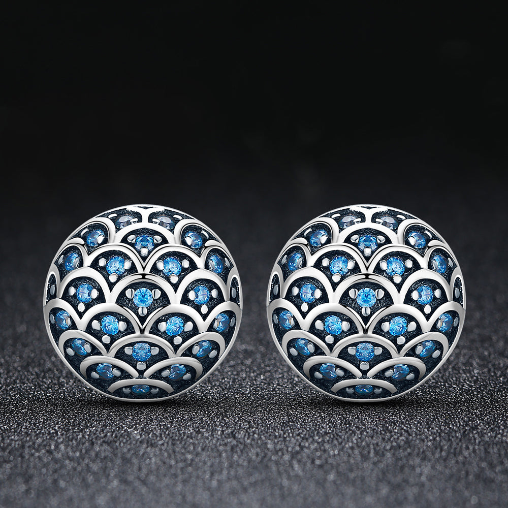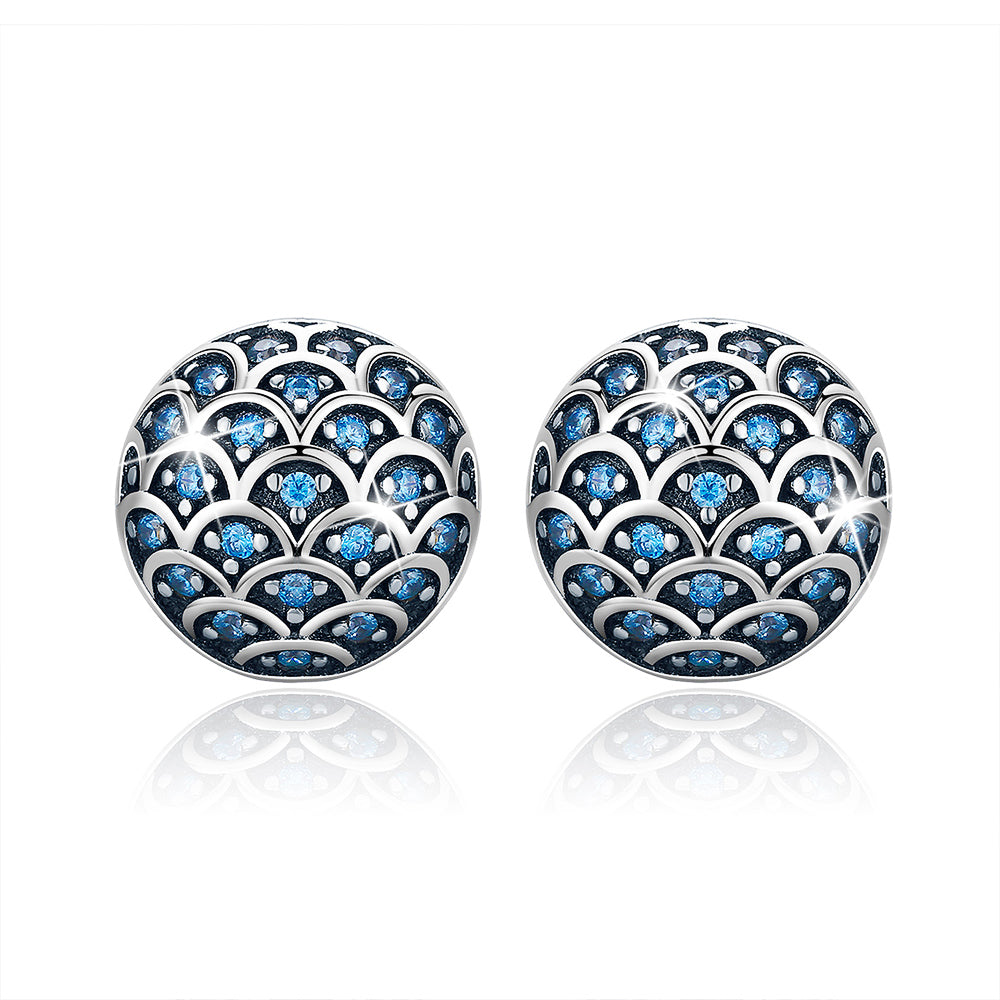 Inspired by the ocean's beauty, this Mermaid Scale Set includes Mermaid Scale Earrings and Mermaid Scale Charm both crafted of solid sterling silver with hints of ocean blue. These simple pieces have anti-tarnish high polish finish that made this piece last longer. A simple yet captivating piece perfect for daily wear or special occasions. The charm is ompatible with popular charm bracelets and necklaces like Pandora, Biagi, Troll, and Chamilia, making it a versatile addition to your collection.