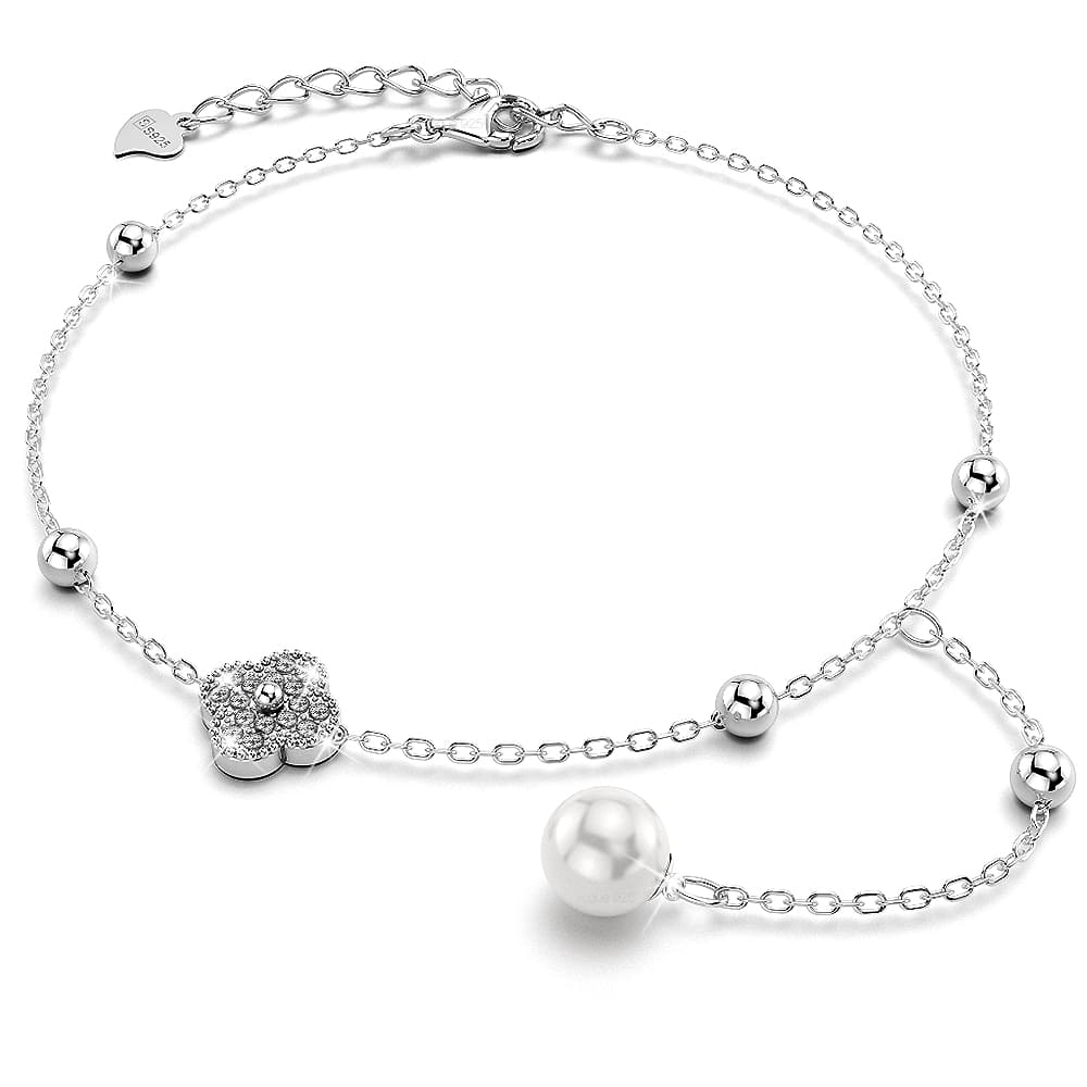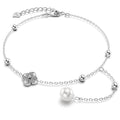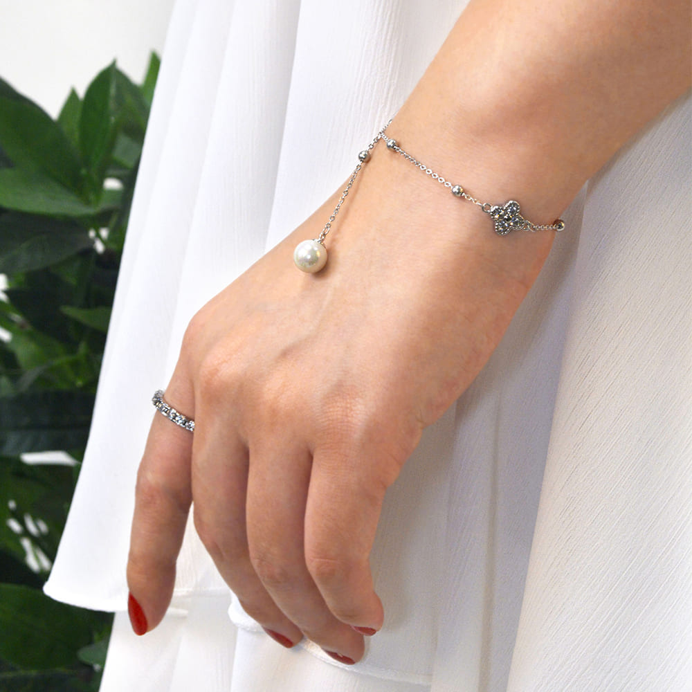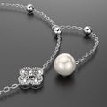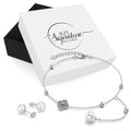 Boxed Solid 925 Signature Silver Clover Pearl Earrings and Bracelet Set
