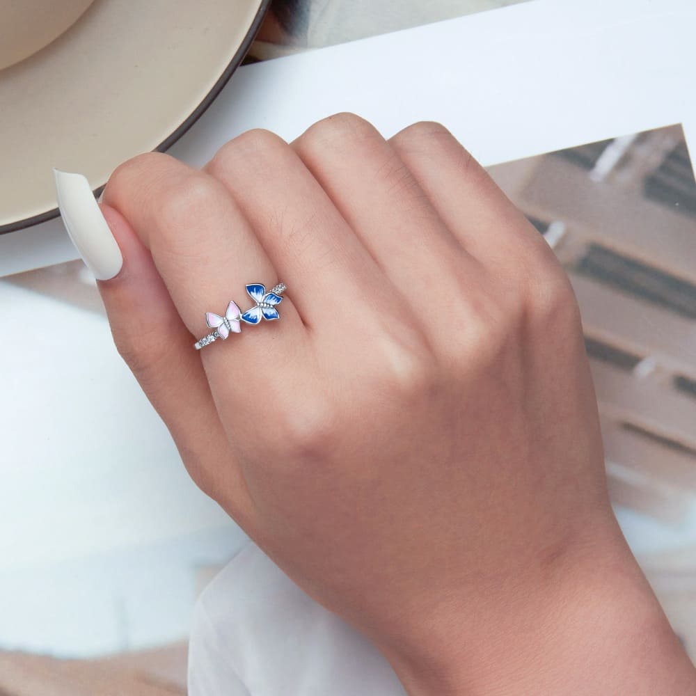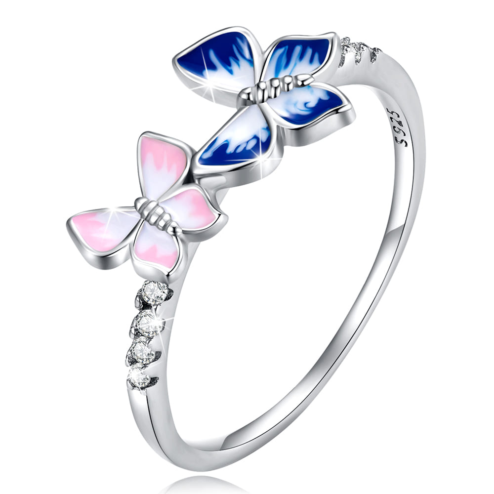 Celebrate love and connection with our Pink and Blue Inlay Couple Butterfly Jewelry Set! This enchanting set includes a beautifully designed charm and a matching ring, both adorned with cubic zirconia and enamel for a touch of sparkle. The charm is compatible with popular charm bracelets and necklaces like Pandora, Biagi, Troll, and Chamilia, making it a versatile addition to your collection.