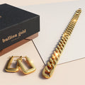 Achieve that bossy look with this chunky gold chain bracelet by Bullion Gold! The 18ct Gold plated masterpiece is paired with the gorgeous Lola Hoop Gold Layered Earrings for your fine looks. The first-rate Stainless Steel makes them durable and long-lasting.Earrings