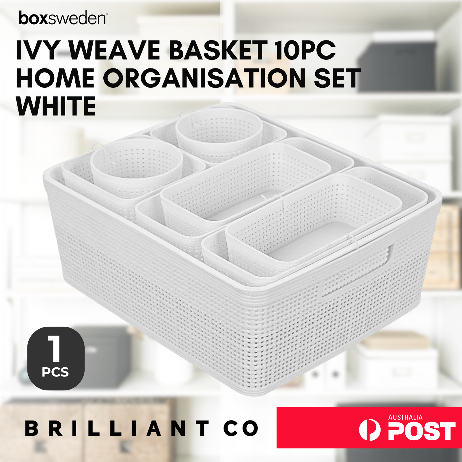 Boxsweden IVY WEAVE BASKET 10PC HOME ORGANISATION SET - WHITE