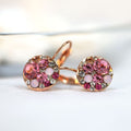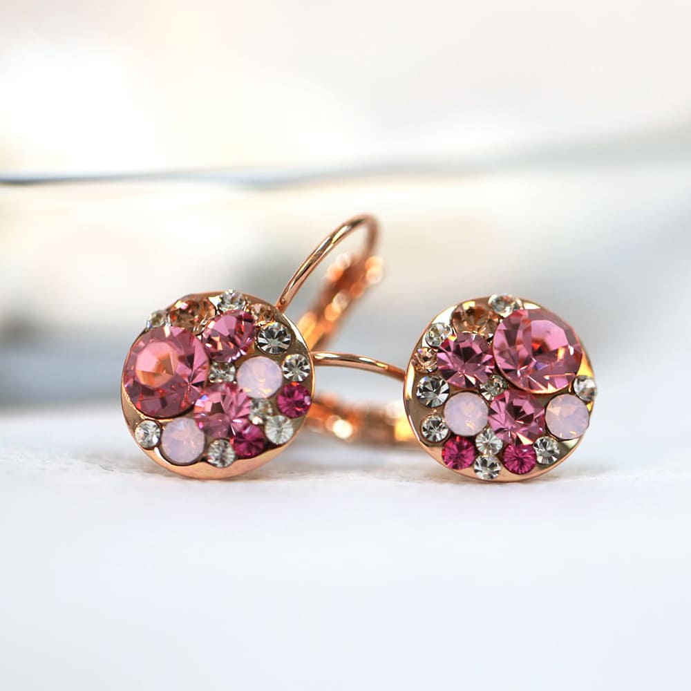 Clustered Austrian Crystals Leverback Earrings in Pinkish Red