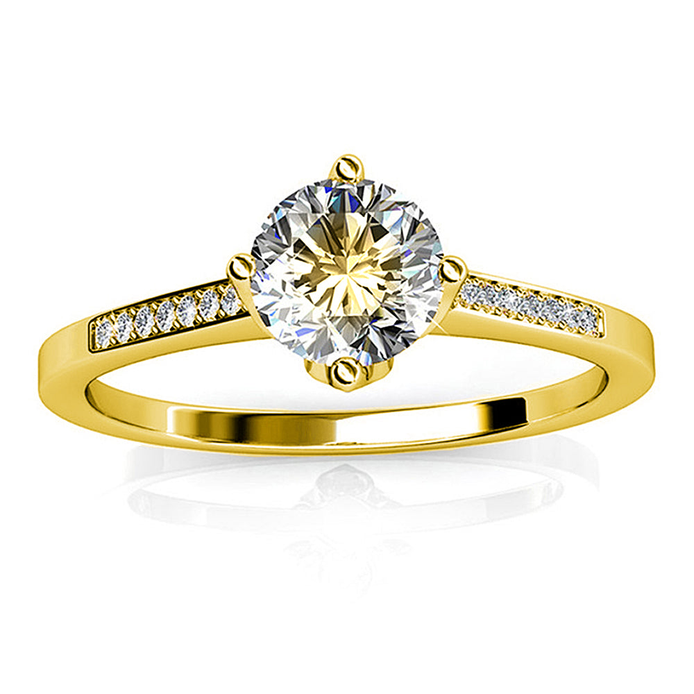 Light up your look with this flattering Engagement ring featuring a SS24 6.5mm Xirius and 14 x PP3 1.0mm Xilion SWAROVSKI® Crystals. This lovely ring is intricately crafted of 18K Gold plated alloy. Surely an inspirational piece and envy to any gaze