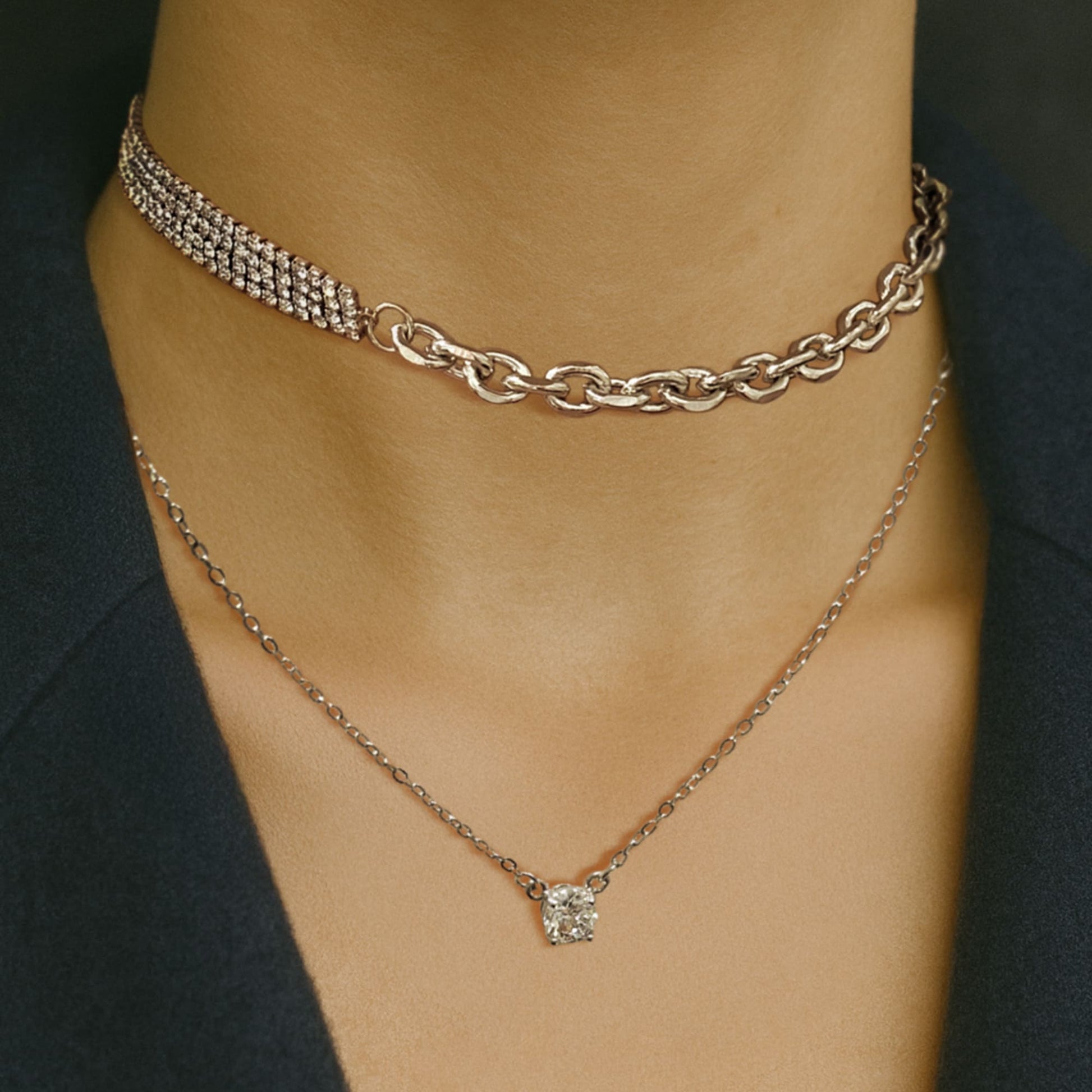 Cuban Link Chain Zircon Choker in White Gold