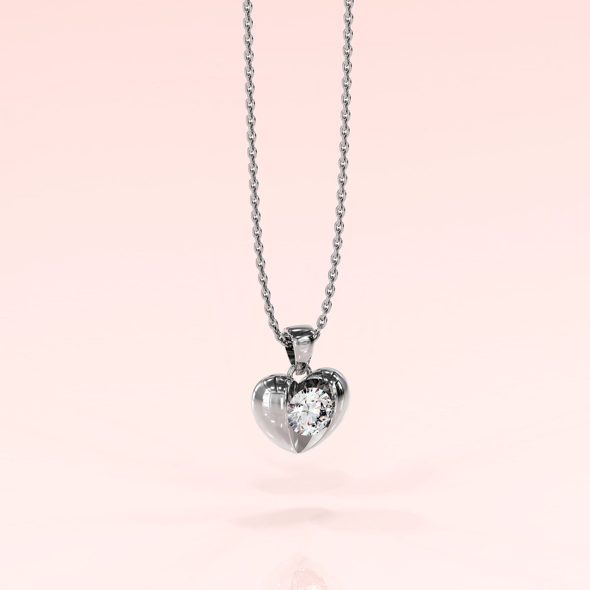 Put on a sweet-charming look with this heart shaped necklace set with a round-cut crystal from SWAROVSKI® measuring 6mm in diameter. Made of highly polished 18K White Gold plated alloy, this design adds a subtle sparkle to your outfit.