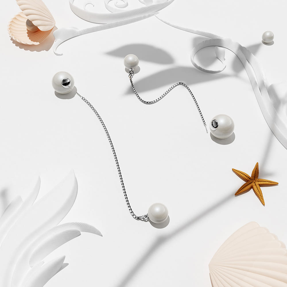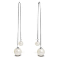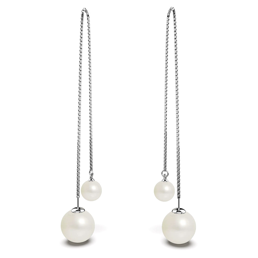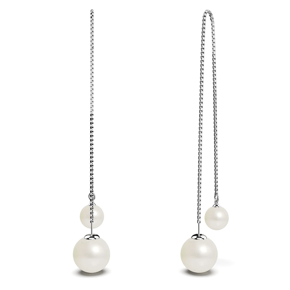 These refined threader dangle earrings are the best jewellery to wear on special occasions. Featuring classic and elegant round white pearls set in a sleek 18K White Gold plated chain. Perfect for a contemporary look.