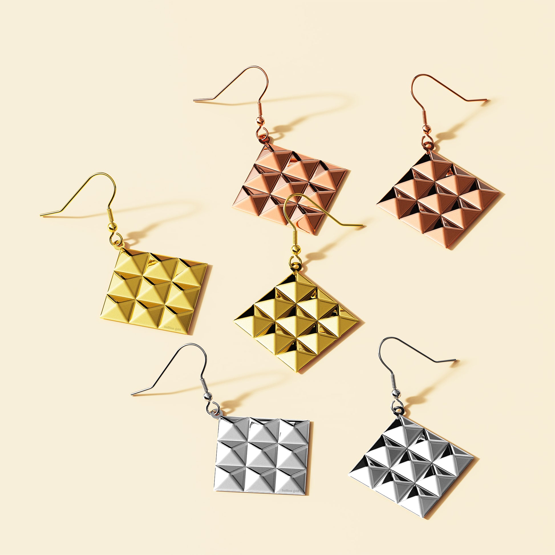 If you are looking for a pair of earrings with a bold and glamorous geometric look, the Fascination Geometric Earrings are perfect for you! The geometric shapes are crafted out of high quality hypoallergenic Stainless Steel, allowing for them to be lightweight, durable and safe for those with sensitive skin.
