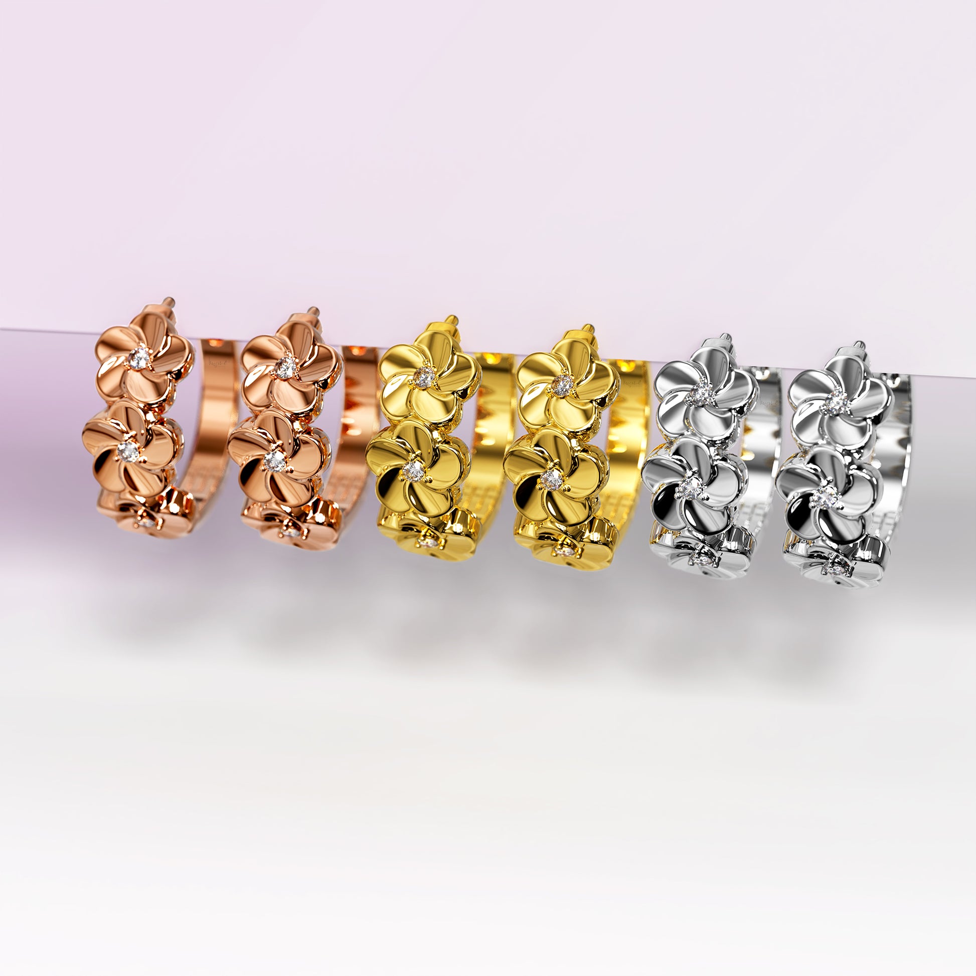 Floral Trio Huggie Earrings Embellished in SWAROVSKI® Crystals in White Gold