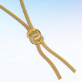 Look sophisticated and classy with this attractive long tassel necklace. The intricate metal tassel passes thru two interlocking open circle cut-outs. Shimmering Crystals from SWAROVSKI® make this gorgeous piece stand-out. Crafted in 18K Gold plated alloy, this necklace makes a beautiful complement to any ensemble.