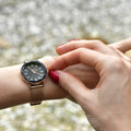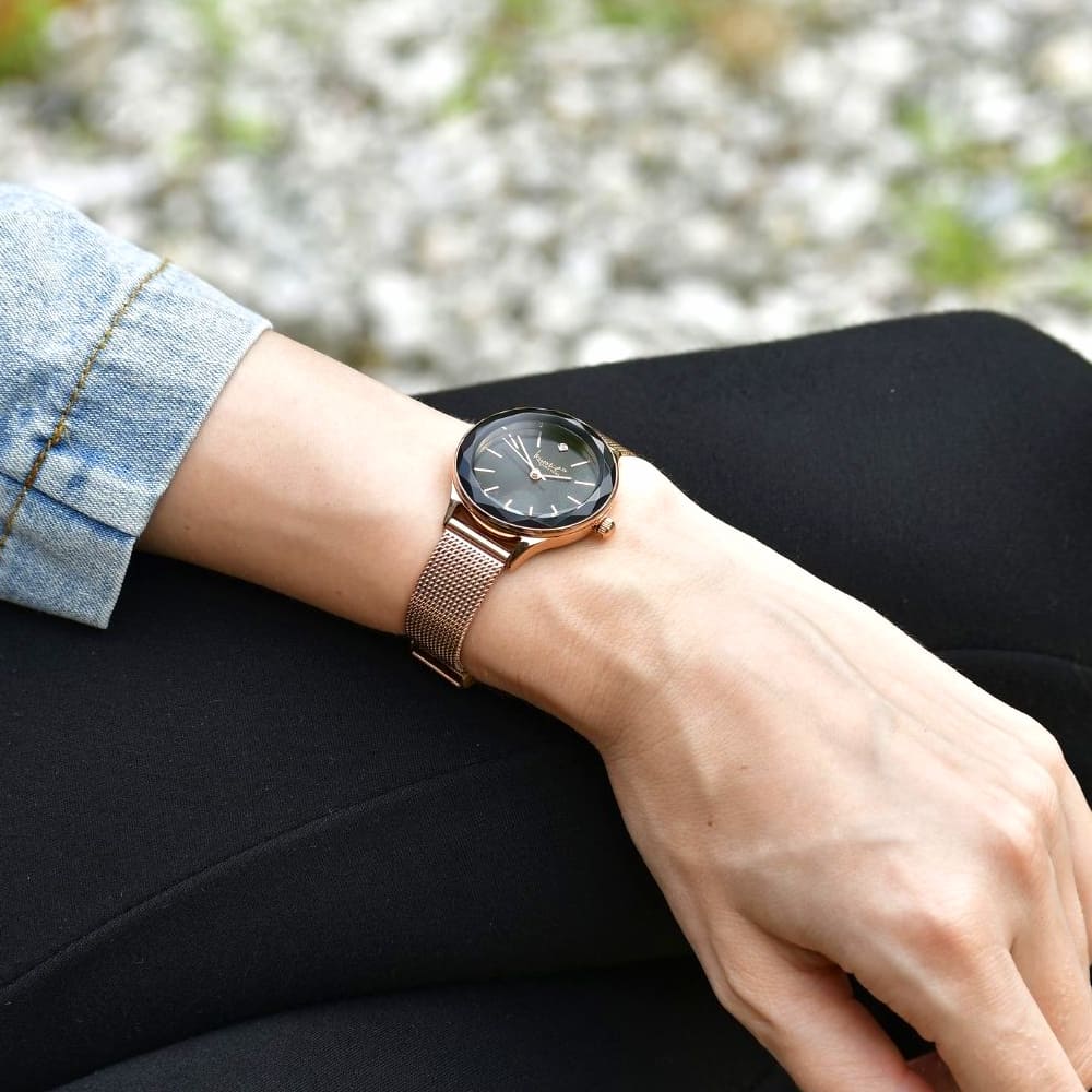 Krystal Couture Geometric Mineral Glass Feat SWAROVSKI® Crystal Watch Rose Gold Black