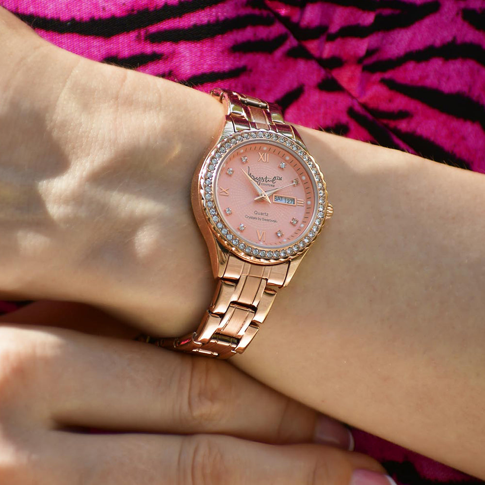 Lustrous Rose Gold Pink Watch Embellished With SWAROVSKI® Crystals