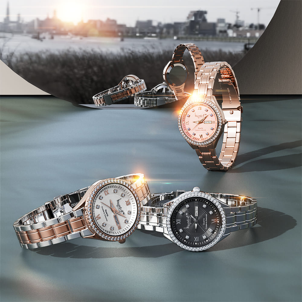 Here's a watch with all the bells and whistles of an expensive timepiece, but without the hefty price tag. The Lustrous Rose Gold Pink Watch Embellished With SWAROVSKI® Crystals features beautiful crystal accents and is well crafted with a Rose Gold plated stainless steel, paired with a pink face for a look that's both elegant and sleek! What more, this watch comes complete with a 30M waterproof alloy, a secure adjustable snap closure and powered by a distinctive quartz movement; making this watch not only gorgeous, but practical too!