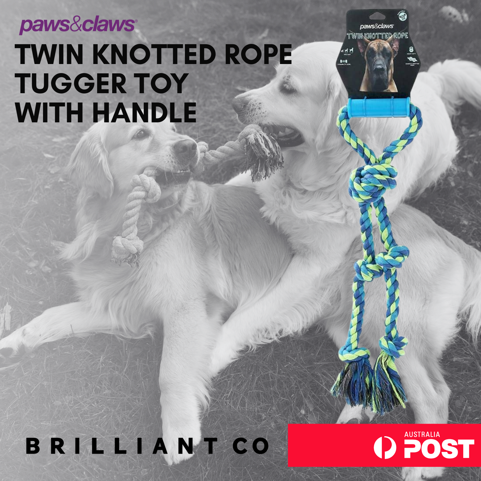 Paws & Claws TWIN KNOTTED ROPE TUGGER TOY WITH HANDLE