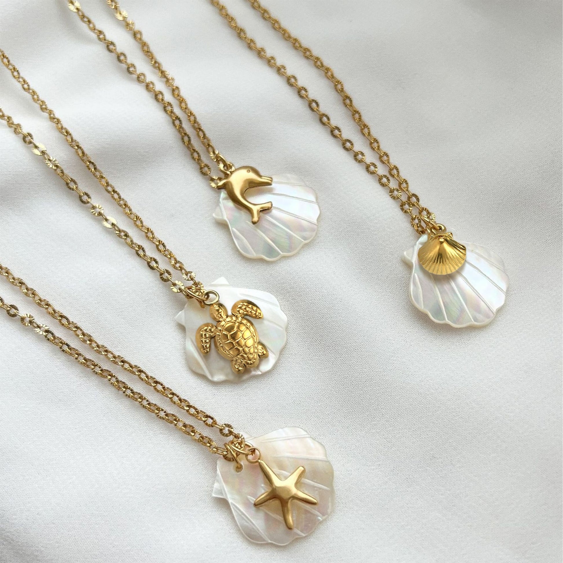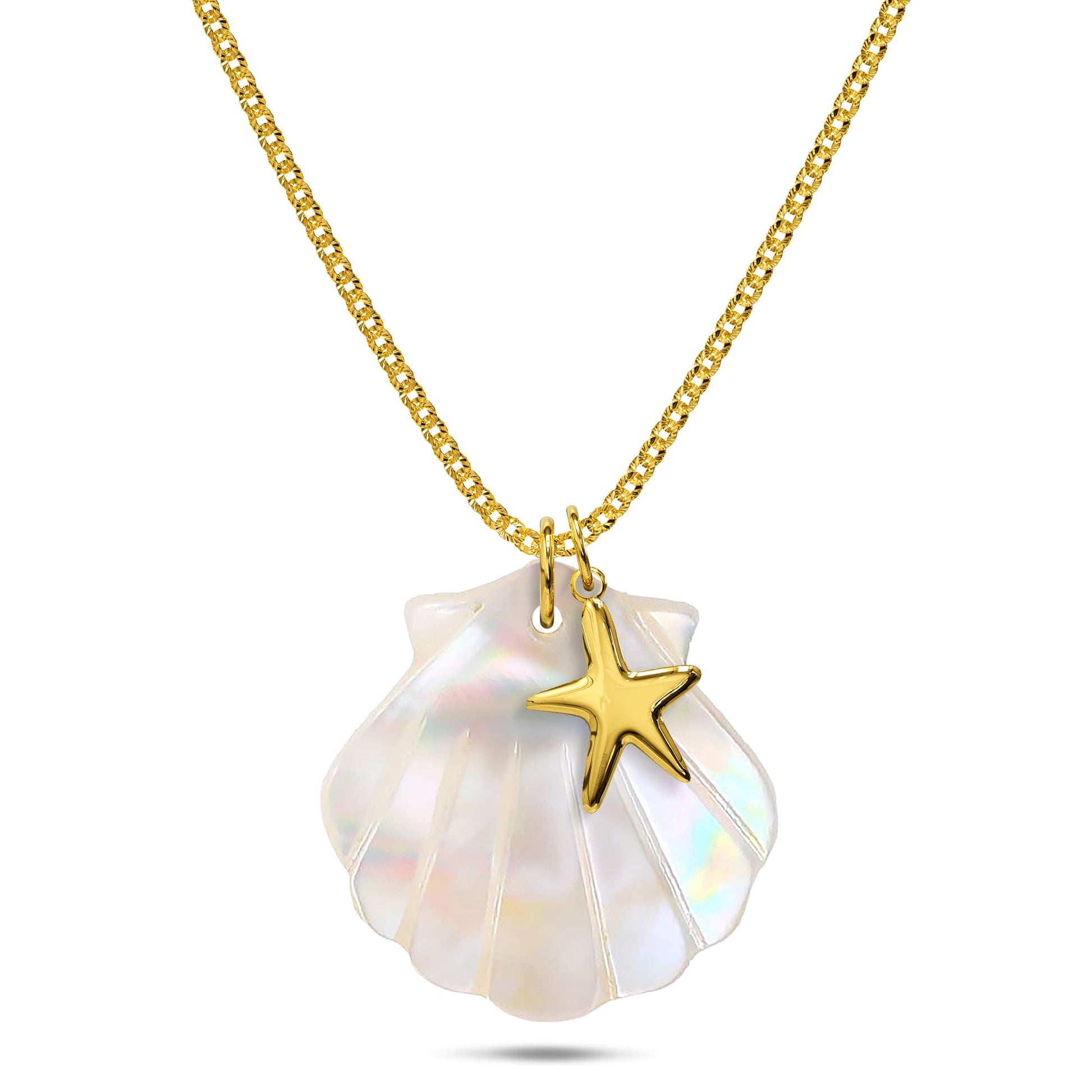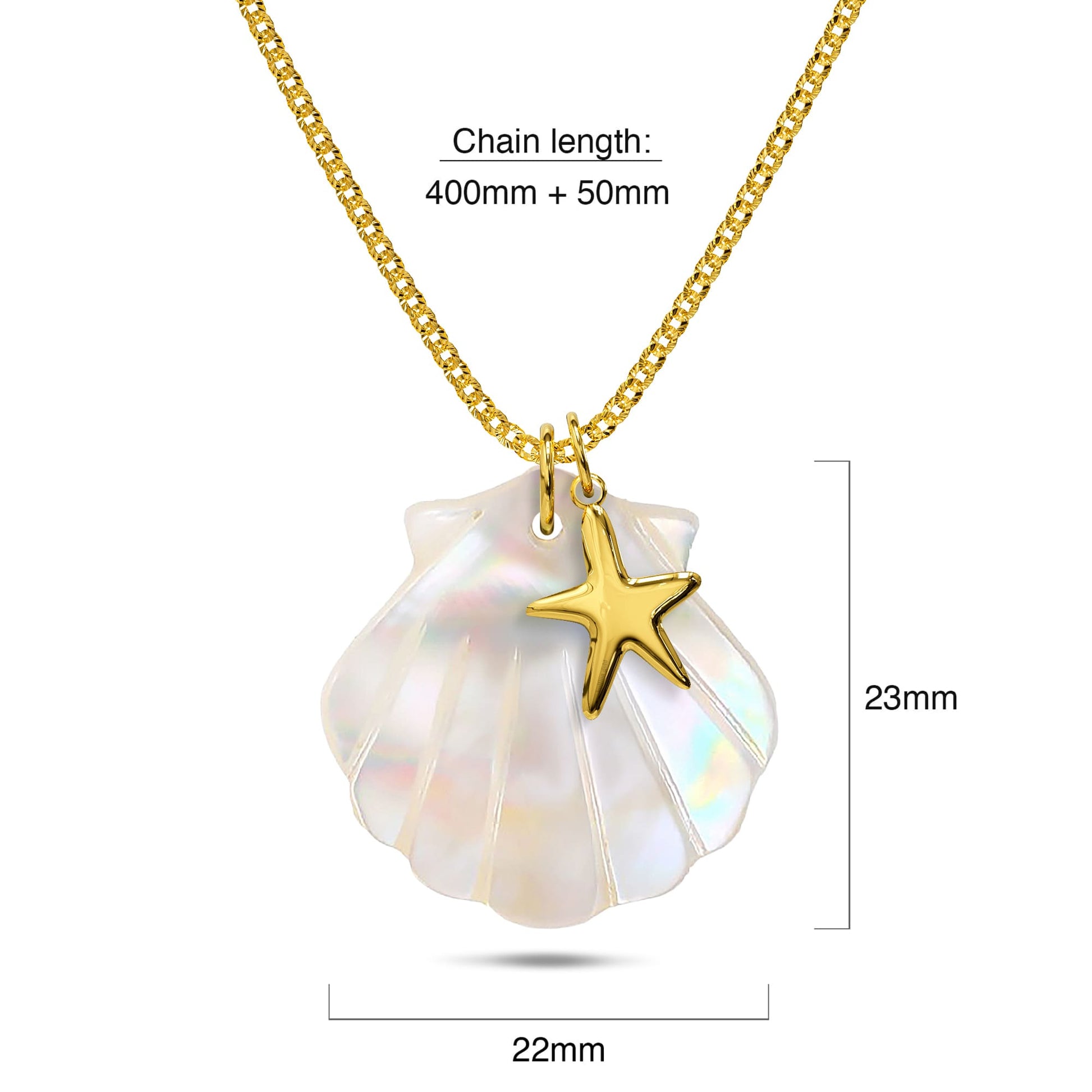Channel ocean vibes with this Pearl Shell & Gold Starfish Necklace! Featuring a delicate gold Starfish charm paired with a detailed shell pendant, this necklace brings a touch of beachy elegance to your style. Whether you're dreaming of summer or simply adding a bit of sea-inspired flair to your everyday look, this piece is perfect for layering or wearing solo. Dive into timeless charm!