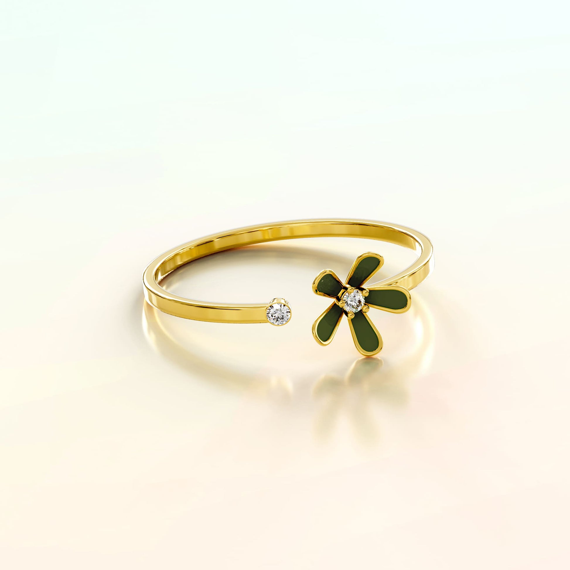 Adjustable Petalia Olive Green Ring Featured SWAROVSKI® Crystals in Gold