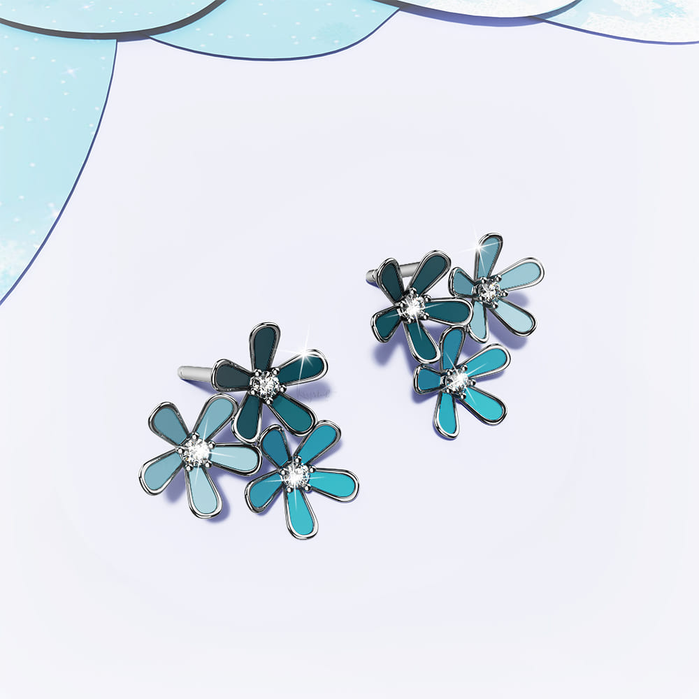 These Petalia Earrings are a dazzling reminder of the beauty in nature. A combination of petal and lite, illustrating light and delicate design. Adorned with SWAROVSKI® crystals, enamel on three delicate blue flowers, they make for an exquisite way to express your love for flora!