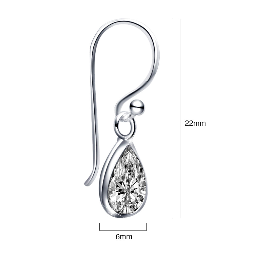 Solid 925 Sterling Silver Clear Drop French Earrings