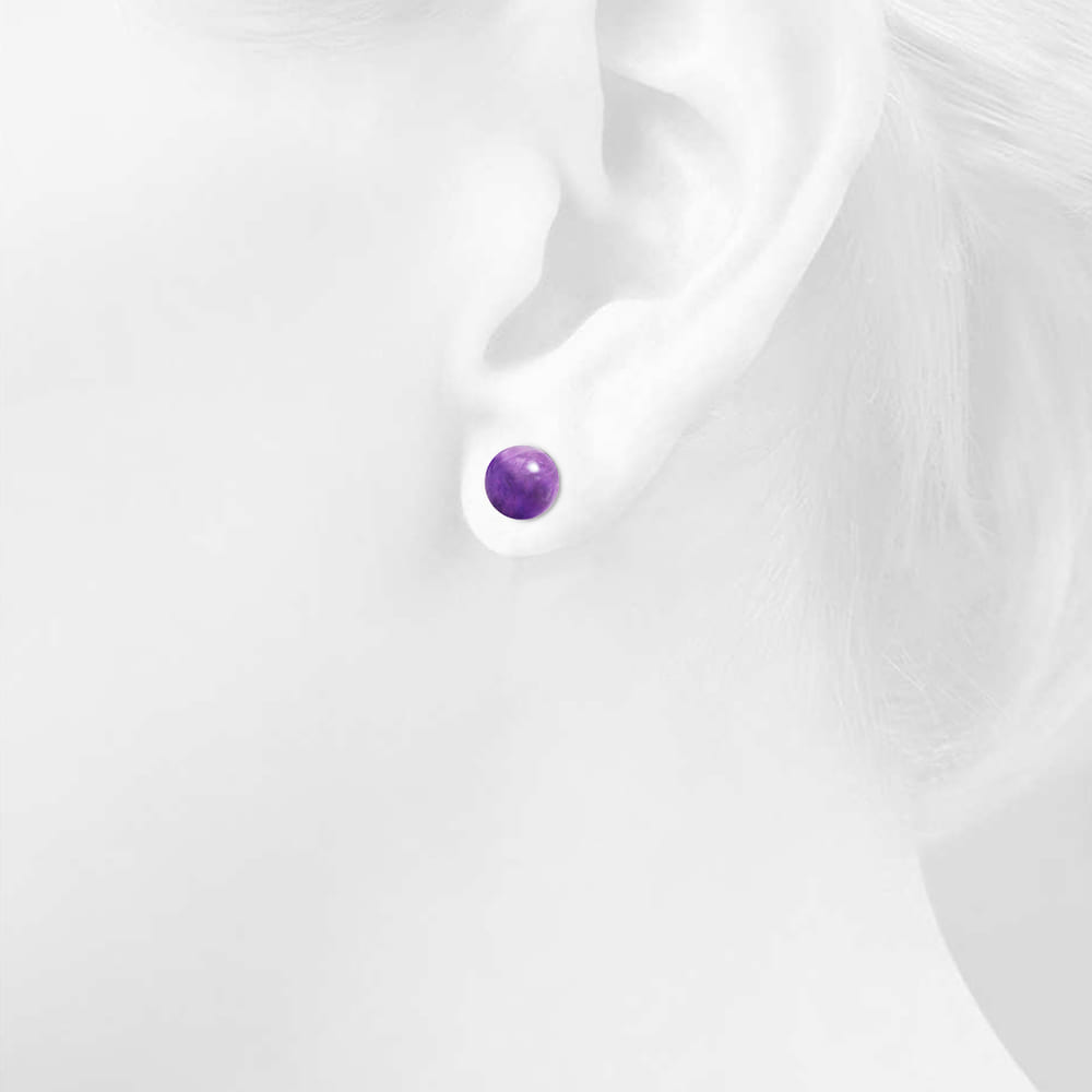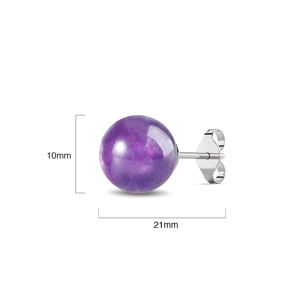 Solid 925 Sterling Silver Sphere Amethyst Stud Earrings