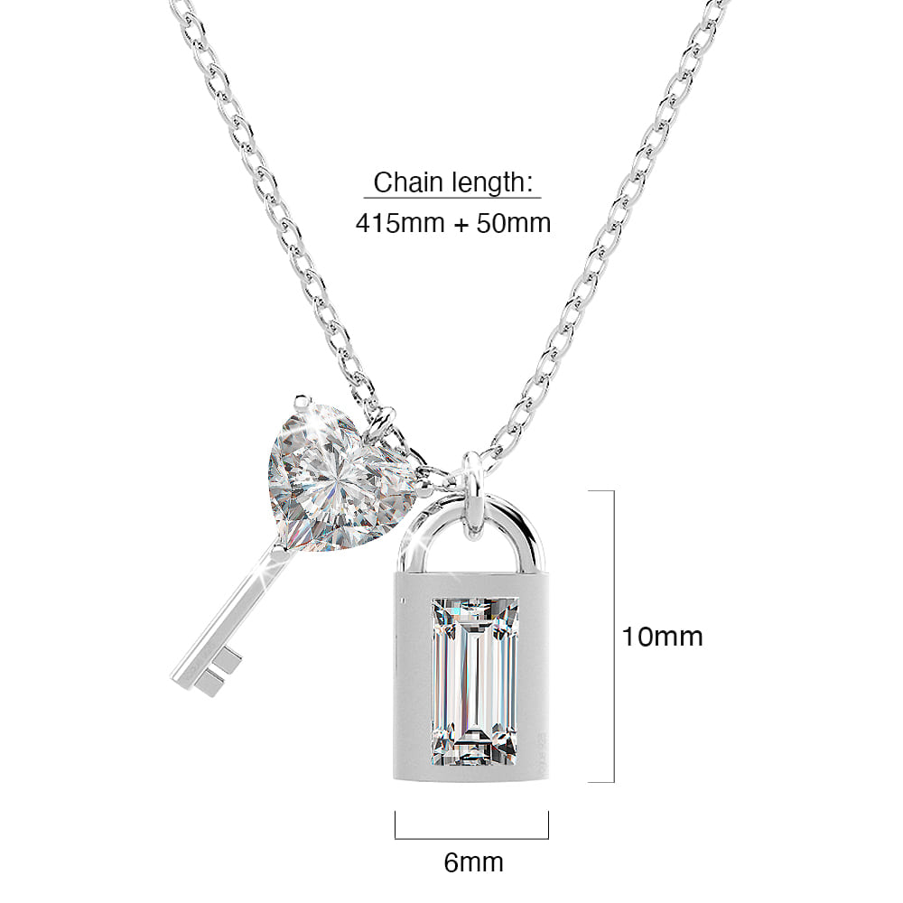 Delightful heart shaped simulated diamond & lock pendant on fine sterling silver chain